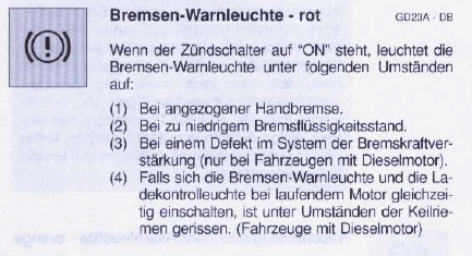 hab seit Freitag ein kleines Problem: Und zwar leuchtet einfach die Handbremse- Kontrollleuchte auf obwohl die Handbremse nicht angezogen ist! Manchmal hörts wieder auf zu leuchten , dann leuchtets wieder! Komischer Weise leuchtet sie garnicht wenn ich nach links lenke !