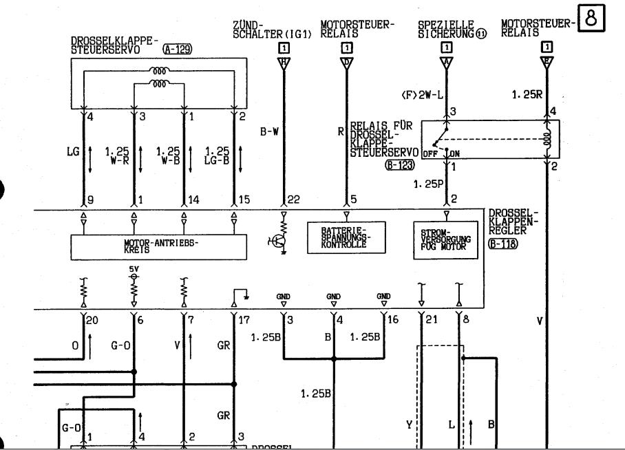 Das Fahrzeug müsste laut meinen Unterlagen ein Drosselklappensteuerrelais haben,das in der Nähe des Steuergerätes sitzt .