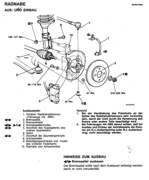 Bremszangenhaltebügel am Achsschenkel 100 Nm, Bremssattel am Bremszangenhaltebügel, verschiebbare Aufhängung , 27 Nm. Beides mit Schraubensicherung versehen.