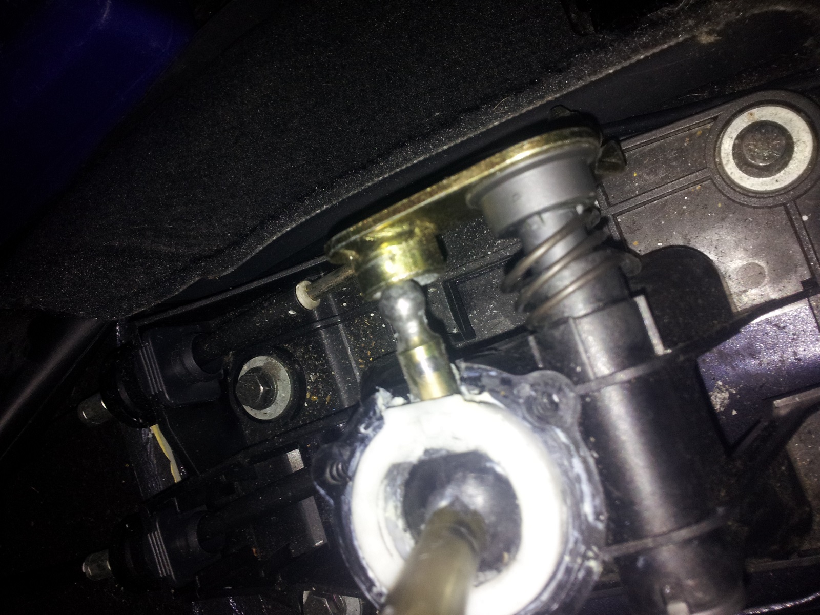 Ich Denke es ist die weisse plastikkappe die aussen auf der kugel sitz welches an einem stift an dem schathebelgestänge hängt und rechts die wähölhebel hoch bzw. runterdrückt , da ich dieses teil schon in der hand hatte und dieses keinen halt mehr auf der kugel hat und somit auch schon nach rechts aussen gewandert ist wobei der hebel völlig locker am wählhebel hing.