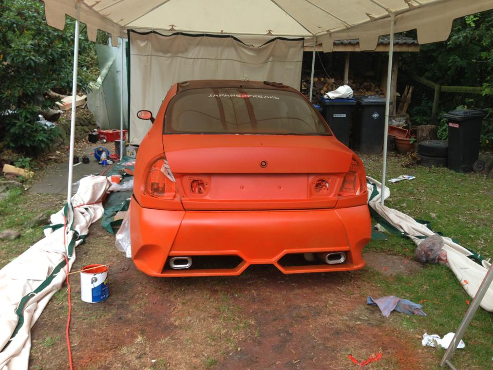 Ja also ganz so einfach wie gedacht war es nicht. Habe das erstmal damit gearbeitet und habe natürlich diverse Anfänger Fehler gemacht die man bei genaueren betrachten auch sieht. Wie z.b die Temperatur draußen nicht beachtet.obwohl man eig. Ohne Probleme bei 30grad das Zeug auftragen kann ging es bei mir in die Hose. Das Plasti dip ist quasi schon in der Luft getrocknet. Und das alles 1 Woche vorm reisbrennen. Habe dann eine Nachtschicht eingelegt und dann hat es auch geklappt. Musste aber leider noch fabe nachbestellen was ein sehr großes Problem war und die Kosten dann auch in die Höhe trieb. Es gab nur noch einen online Shop der dies orange angeboten hat. Und somit lagen die Kosten für alles mit sprühpistole und allem bei ca. 500-600€