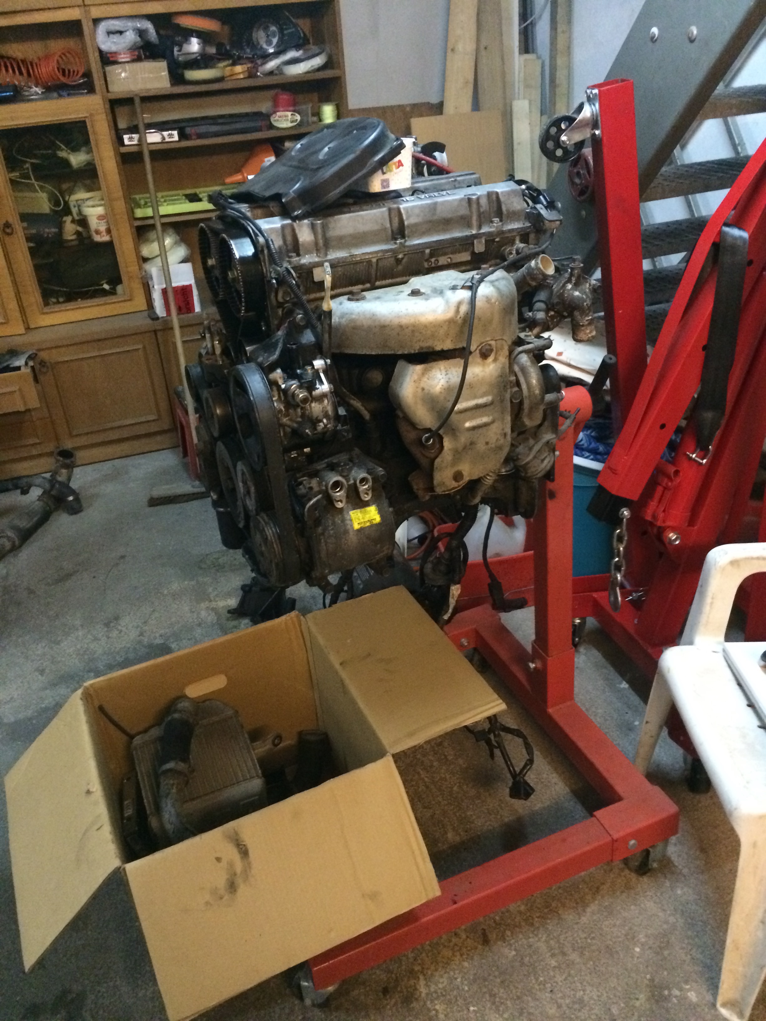 Jetzt hieß es eine Halle zum Schrauben zu finden damit ich nicht die heimische Garage blockiere und es fand sich sogar was im Nachbarort also ging es ans zerlegen während der Motor die Reise aus Japan angetreten hatte.