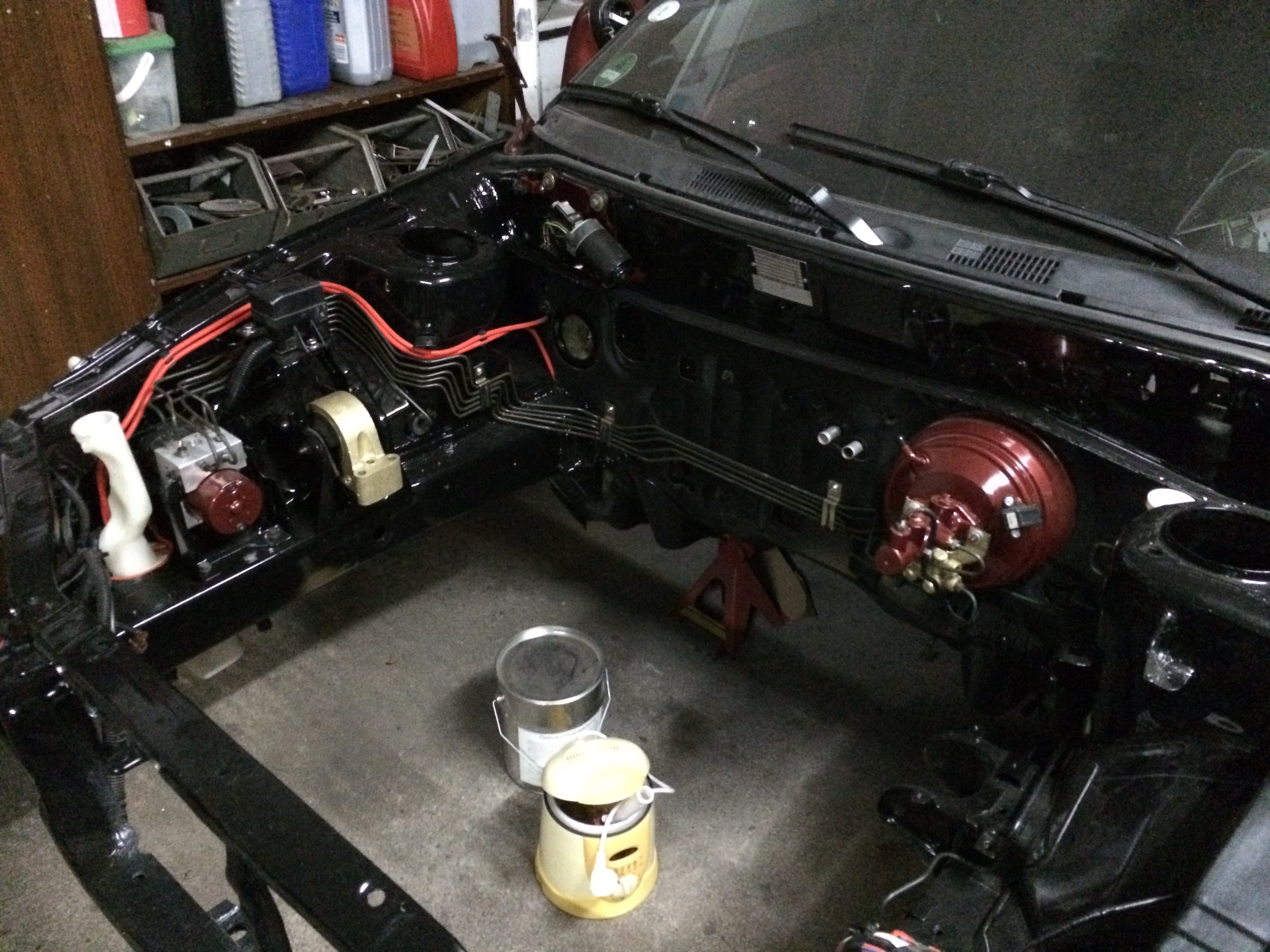 Der Motorraum wurde nachdem diverse Teile eingeschweißt wurden schwarz lackiert und sämtliche Teile aufbereitet/erneuert
