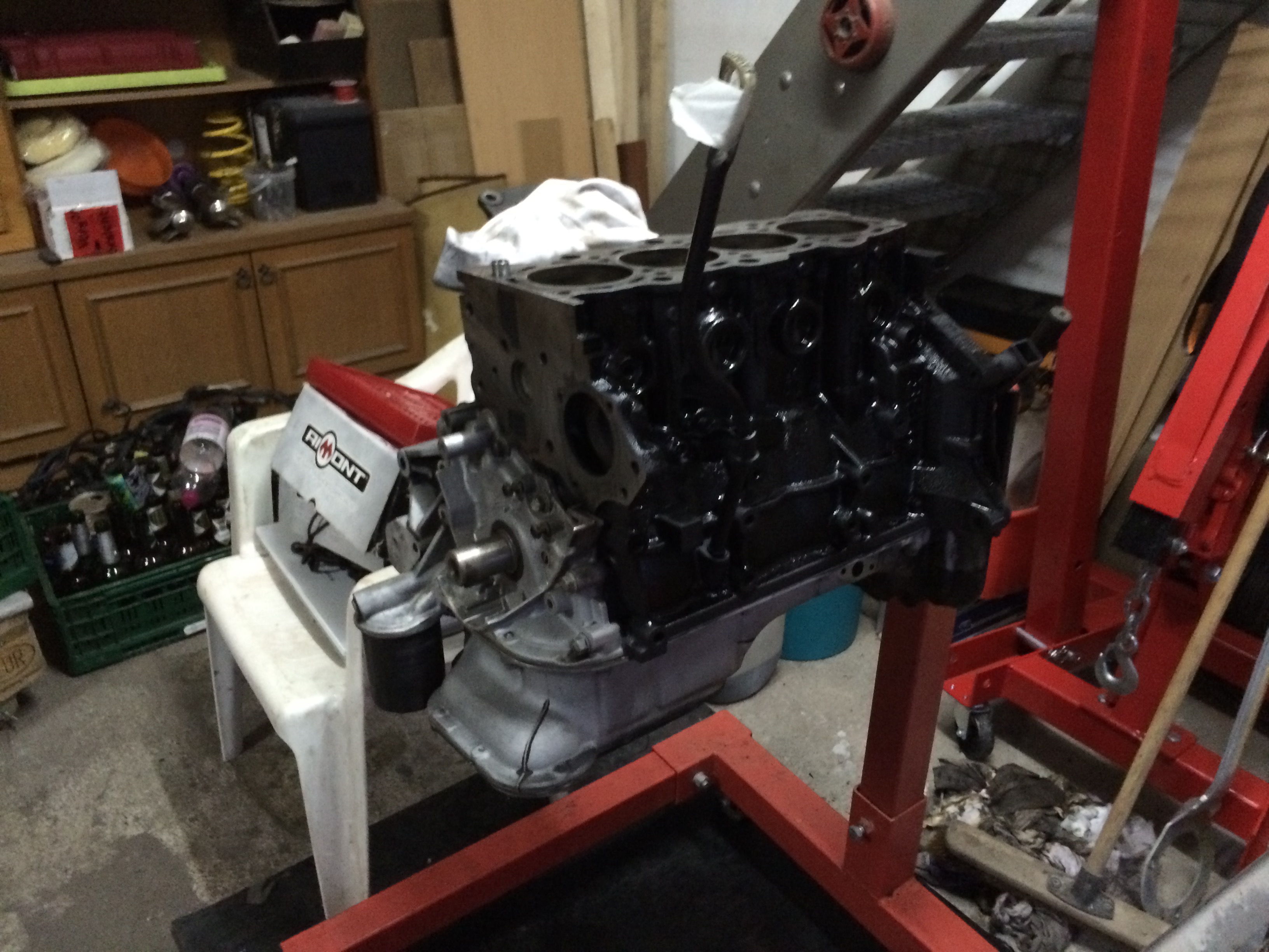 Nun ging es erstmal an den Motor zerlegen, sandstrahlen, Ventile einschleifen, planen und den Block mit Keramiklack beschichten