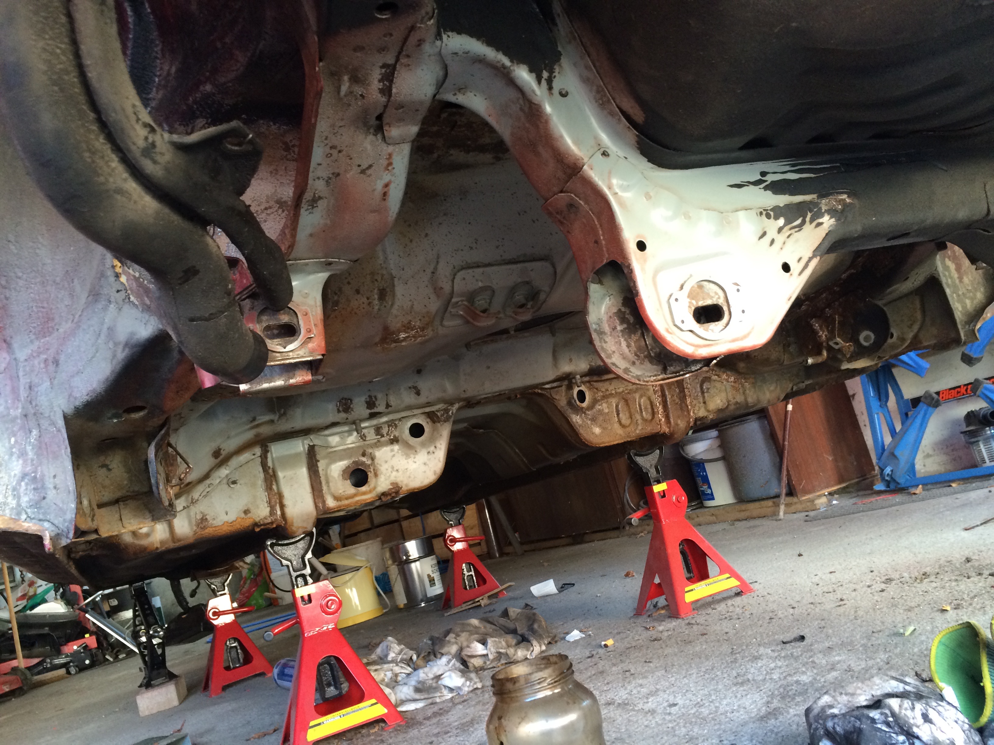 Zu guter letzt das schlimmste und zeitintensivste, der Unterboden. Ursprünglich sollte er erst dran sein wenn der Motor läuft jedoch habe ich aufgrund des schlechten Zustandes die Hinterachse rausgeschnitten und alles erneuert/aufbereitet