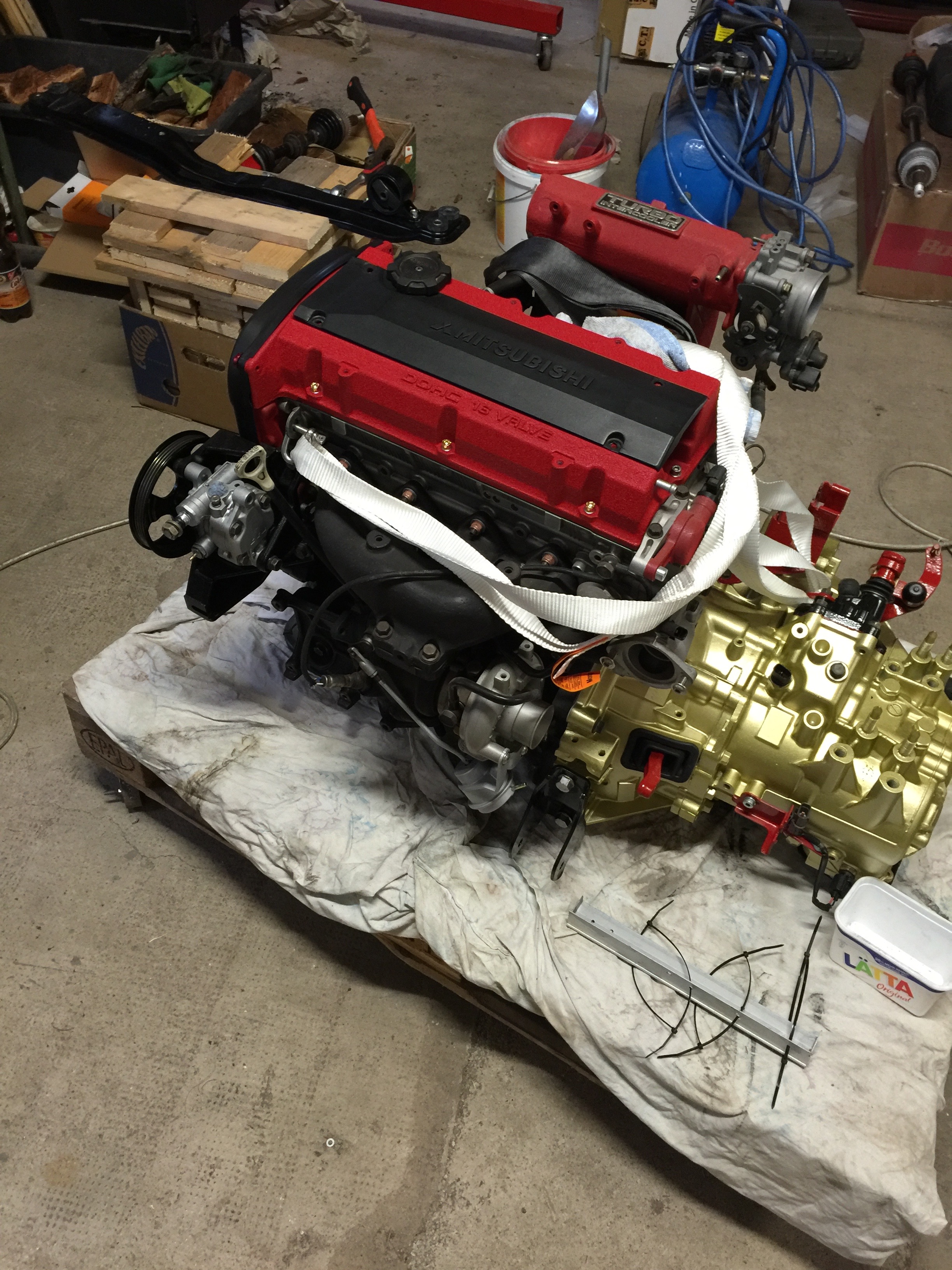 Da ich es endlich mal geschafft habe meine Fotos zu sortieren möchte ich in diesem Thema mal mein Projekt "Carisma GSR" vorstellen. Einige werden mich oder mein Auto schon länger kennen und wissen das ich schon ewig von einem Turbo träume, nach langem suchen habe ich mich dann für den Motor aus einem Lancer CC GSR(CM5A) entschieden. Es sollte also ein 4G93 Turbo sein, dieser leistet 205PS und 275Nm. Ende 2014 war es dann soweit ich habe ein Angebot bekommen und zugeschlagen.