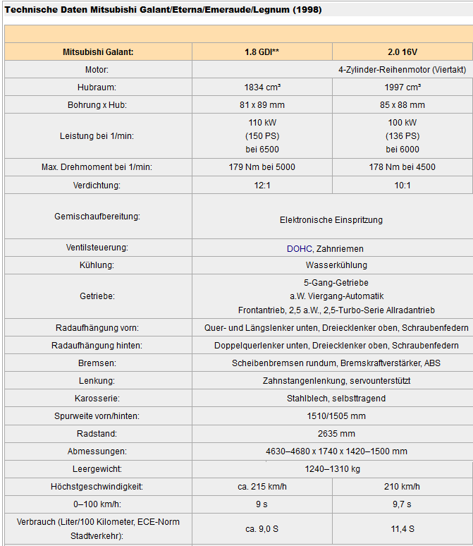 Nein es ist kein schreibfehler !!!! Mitsubishi Legnum 1,8 16V GDI BJ.96 ( Baugleich Galant 1.8GDI ) Nochmal : 1.8L 16V GDI 4G93 --> Legnum ( USA 150PS ) Galant ( Deutschland 140-142PS )