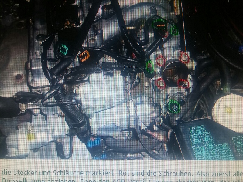 Nun habe ich gesucht und siehe da, an der ansaugbrücke ist ein kleiner magnetschalter. An diesen magnetschalter geht ein unterdruckschlauch von der drosselklappe und von dort aus über die hochdruckpumpe nach unten abgewinkelt weiter. Mir fehlt irgendwie der unterdruckschlauch der winkelstück kommt. Weis jemand zufällig wo der hin geht/ran gehört?