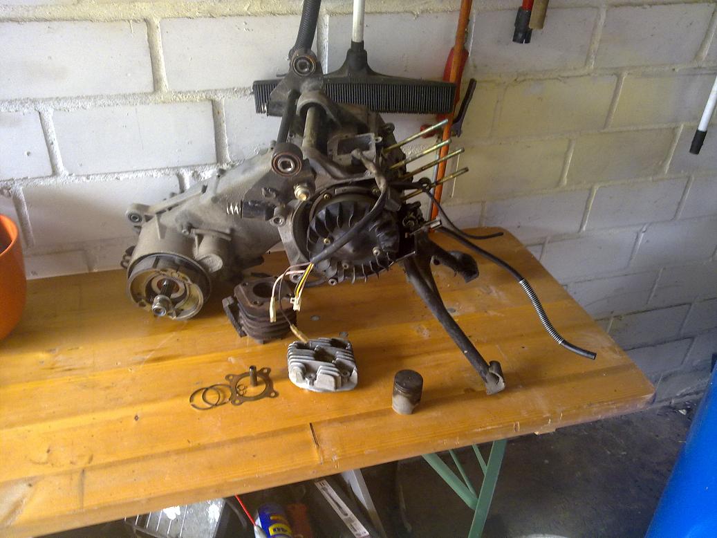 Mein kleiner Rex Roller macht mir Probleme.Der 50ccm 2 Takter kommt nicht mehr auf Leistung. Nach nem großen Service (Riemen, Gewichte, Filter, etc. etc...) habe ich auch den Vergaser gereinigt und etlichen Einstellungen am Gaser vorgenommen. Heute habe ich den Motor ausgebaut und und den Zylinder abgenommen. Der Kolben hat auch an den Seiten starke Verrußungen. Ich weis jetzt nich ob das normal ist oder nicht. Leider fehlt mir auch das Werkzeug für einen Kompressionstest.