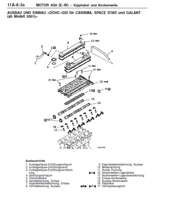 Die Nummer 3 ist zwischen ASB und Nockenwellenlagerdeckel, 6-9 kommt zwischen Nockenwellenlagerdeckel und Zylinderkopf. Ich bin mir 100% sicher, ich habe die Dichtung mehrfach in der Hand gehabt und beim Carisma noch nie den Ventildeckel runter gehabt. Bitte korrigier das in deinem alten Post, um Missverständnisse vorzubeugen.