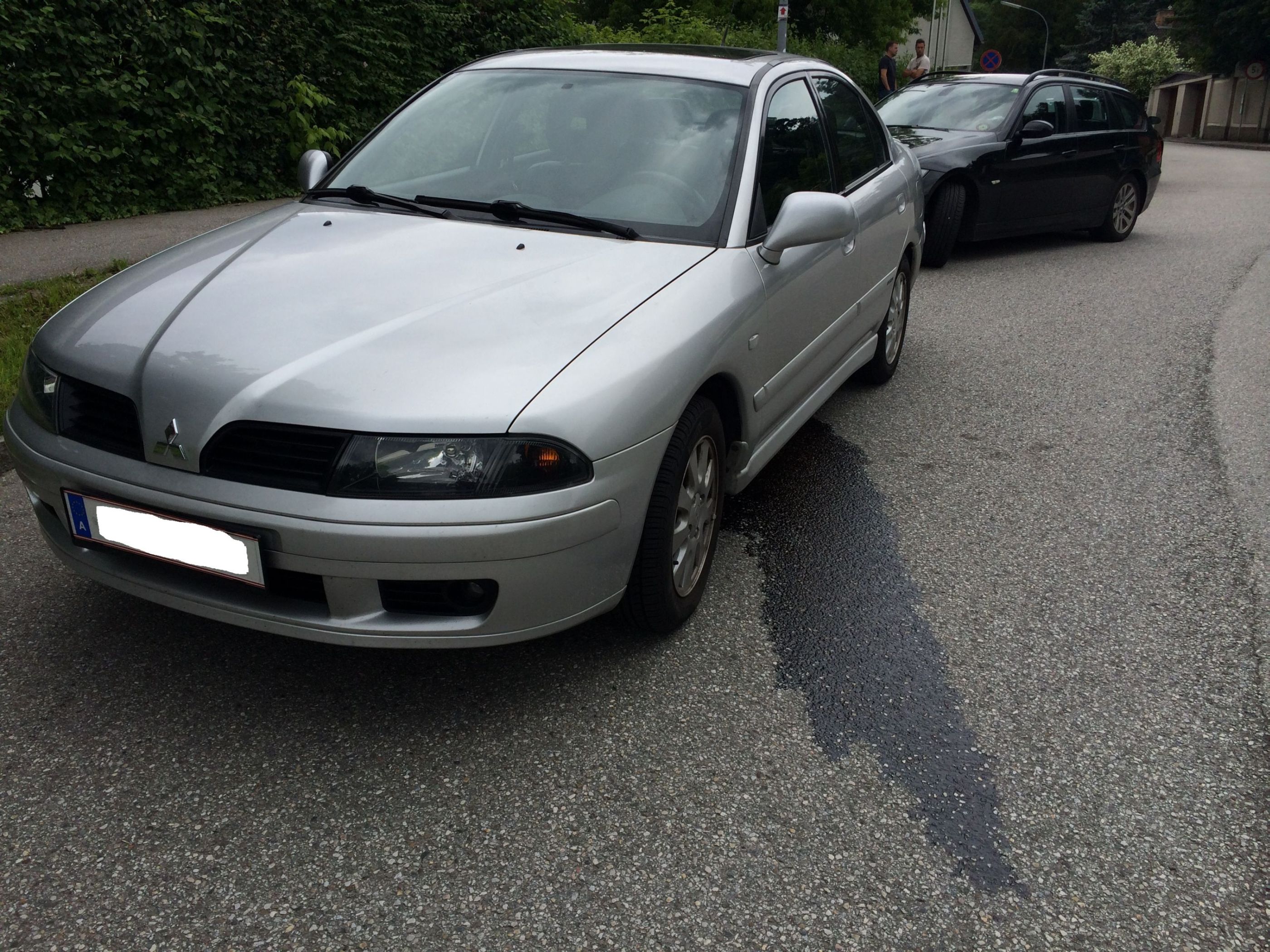 Danach bin ich paar Minuten im Auto sitzen geblieben um Nachzudenken was ich nun tun soll und als ich Ausstieg sah ich schon eine relativ groß deutliche Leckage bzw. Pfütze unterhalb des Autos und es roch nach Benzin.