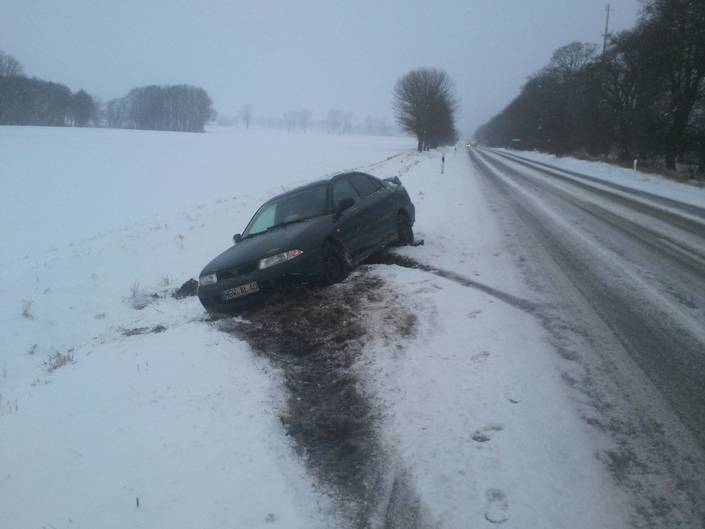 Auf der hälfte der Strecke geschah es, was ich immer vermeiden wollte. Der Vordermann verlor einen Eisklotz, der bei ihm am Hinterrad hing. (derzeitige Geschwindigkeit 70-80km/h) Den Eisklotz erwischte ich mit dem linken Vorderrad, wodurch ich auf dem ungeschobenen(ca. 15cm hoher Schnee) Mittelstreifen gekommen bin und kam beim gegenlenken (um wieder zurück in die Spur zu kommen)ins Schleudern und landete im Straßengraben von der Gegenfahrbahn.