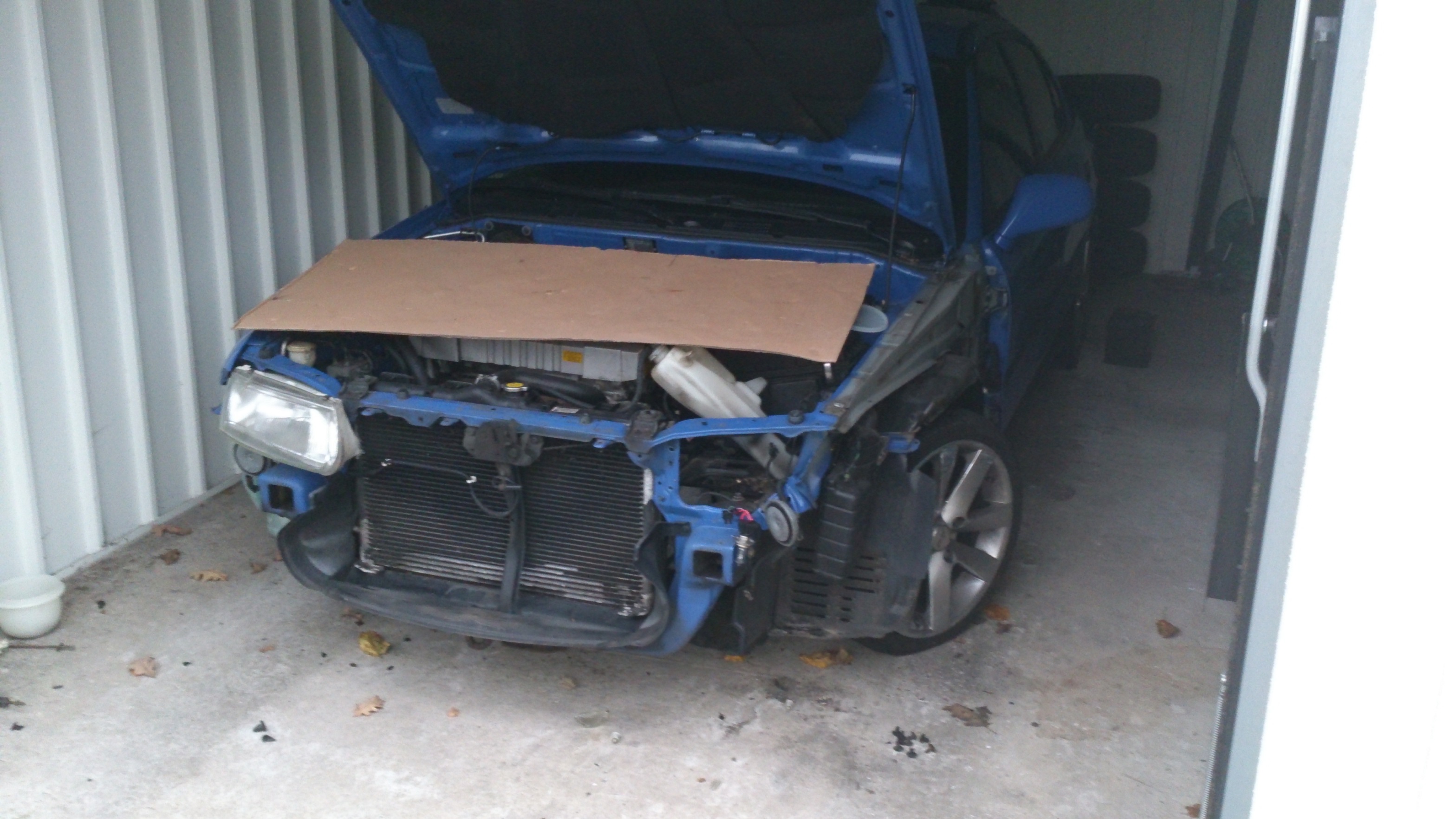 Ohja meiner hatte vorne auch noch schön einen drauf bekommen... Der kühlerträger hatte etwas gelitten. Naja vorne alles abgebaut und den Rahmen grade gebogen/ gezogen alles gerichtet und alles wieder eingebaut