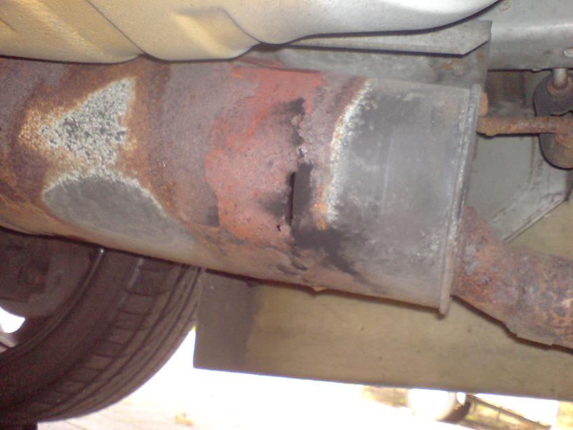 Als ich oben in NRW war, hab ichs festgestellt und ihn in die nächste Werkstatt gebracht zum zuschweißen, damit Plasteteile des Autos keinen Schaden nehmen.