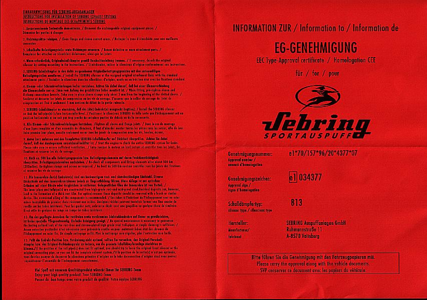 hier ist sie....im anhang.... das müsste sogar der Gleiche Mist wie für den Remus sein... da im Endeffekt sowohl Sebring als auch Remus die gleichen Töpfe bauen....