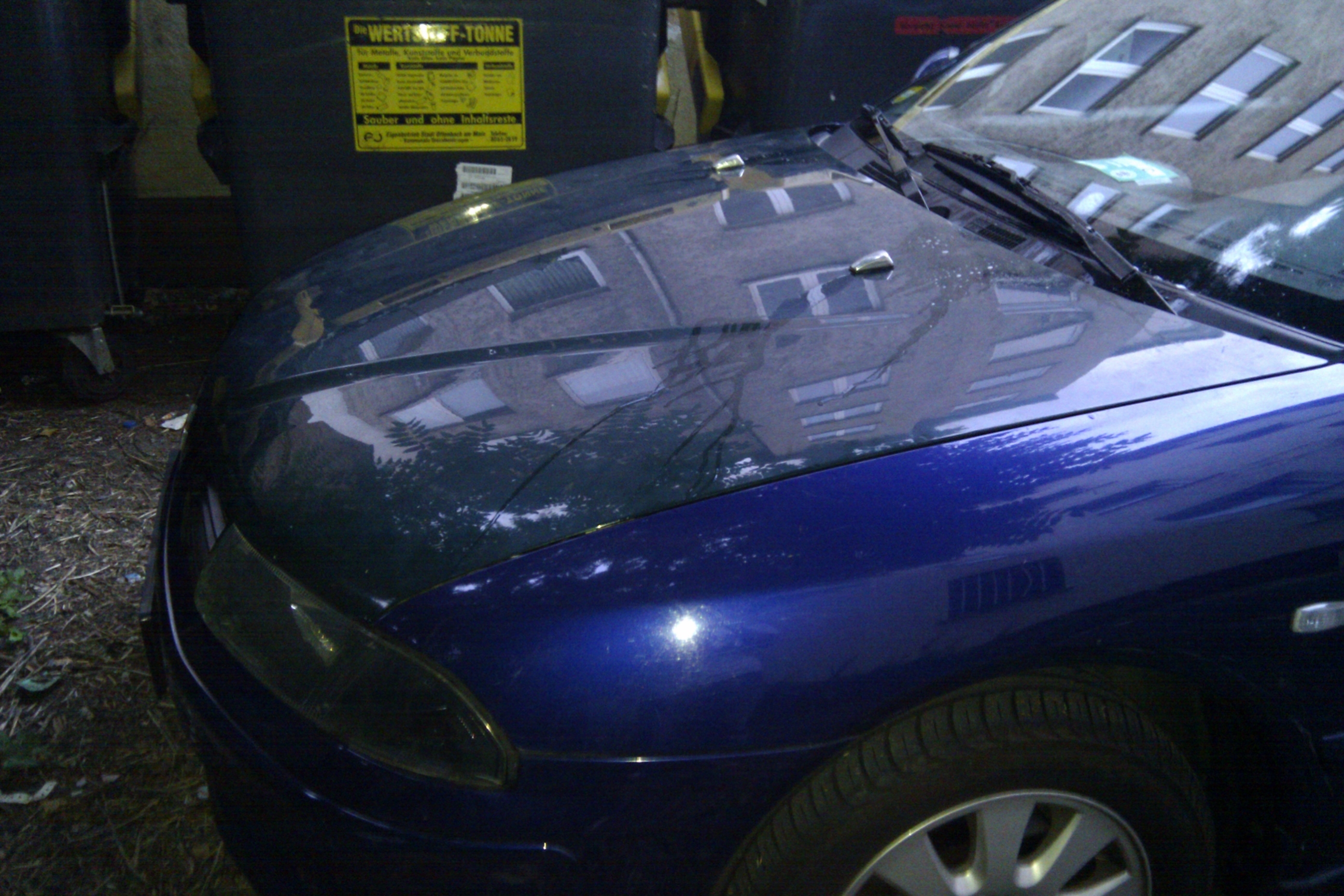 Naja viel zu sagen gibt es eigentlich nicht. Die Haube hat eine Beule, müsste eigentlich per Smart Repair weggehen, aber die Frage ist ob sich es lohnt, bei den Schrammen, die ich generell habe.