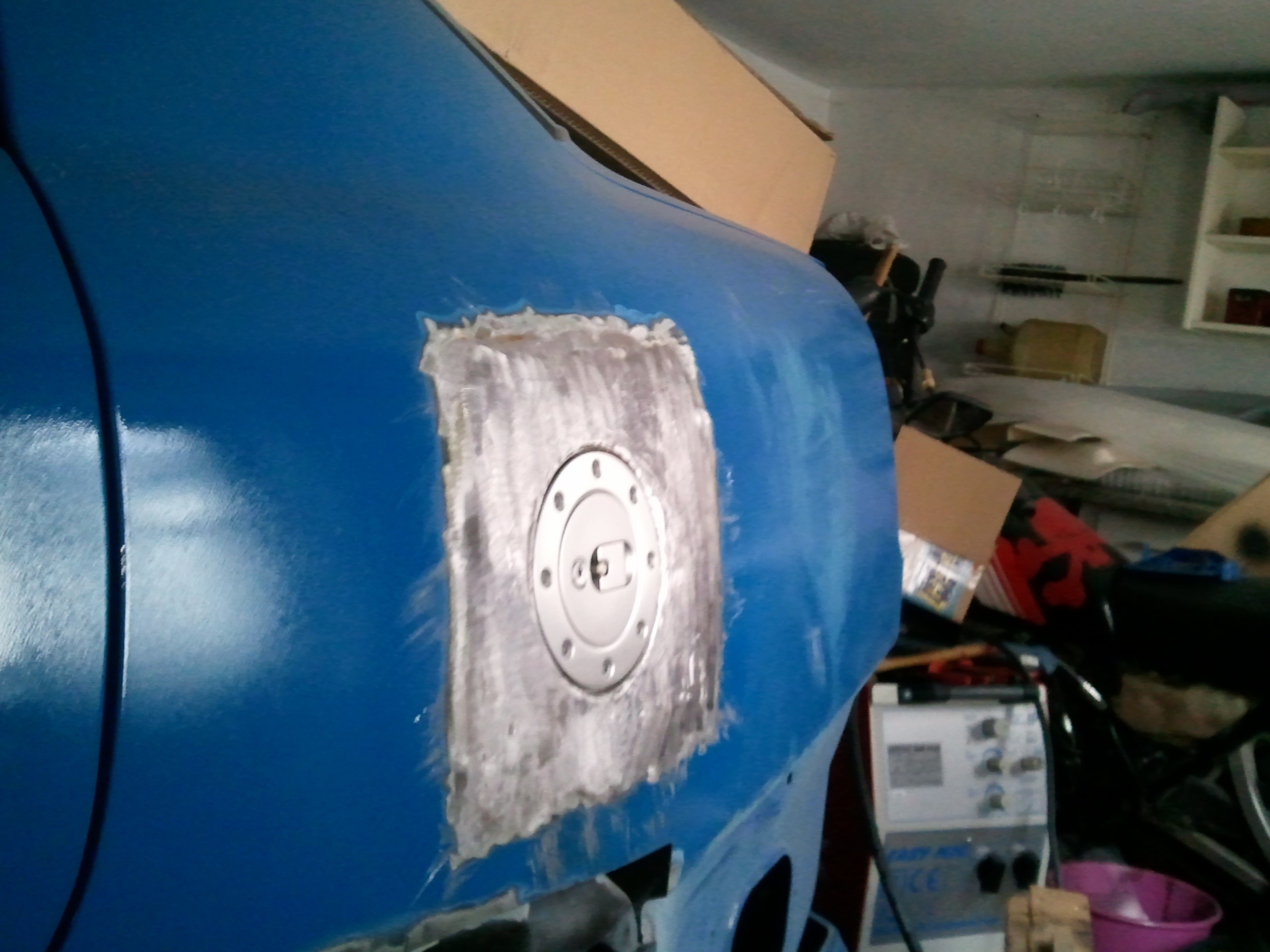 Wegen extremen Rostbefall des Tankstutzenblechs (also das Blech hinter der Tankklappe) hab ich beschlossen den ganzen Schrott raus zu flexen und statt dessen so einen "DTM-Look" Tankstutzen rein zu schweißen.