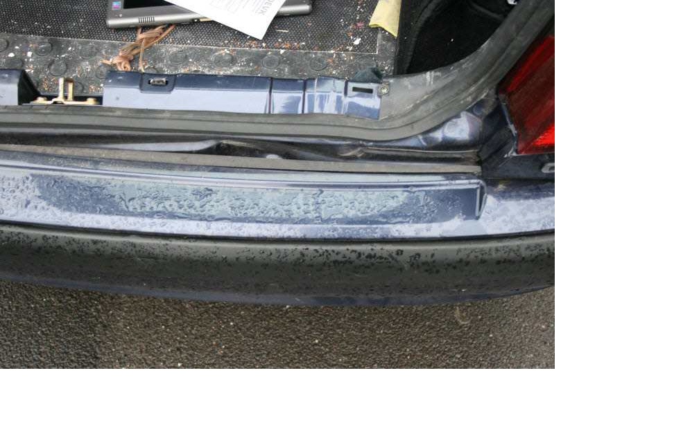 Das Heckblech ist eingedrückt.