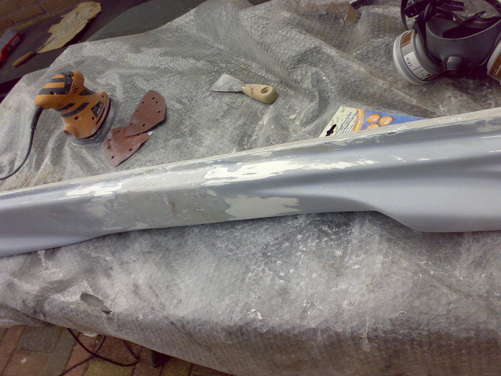 Also erstmal alles aufgefüllt mit Glasfaserpaste und gut trocknen lassen ,danach habe ich alles geschliffen (hab kein gefühl mehr in meine hände :haha: )