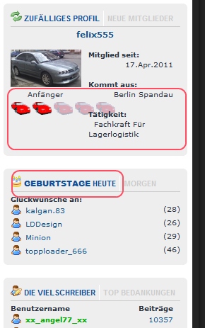 es sind die blocks auf der startseite "zufälliges profil / neue mitglieder" und "geburtstage heute / morgen"