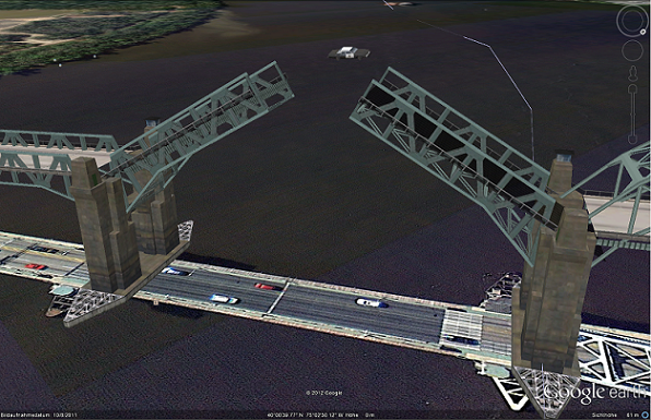 Zoomt ganz nahe ran auf dem Teil der Brücke die aufgeklappt ist .. und dann könnt ihr was sehen.