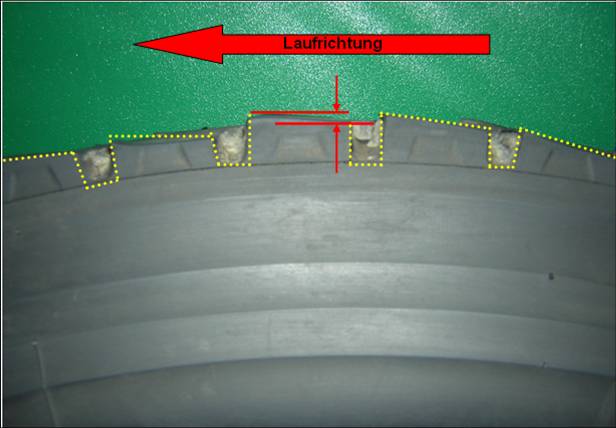 Beim Auftreffen eines Profilblockes auf die Straße wird dieser belastet und in Laufrichtung gestaucht. Beim weiteren Abrollen erfolgt die Entlastung / Entspannung des Profilblockes. Dabei kommt es zu hohen Schlupfbewegungen an der hinteren Profilblockkante und die Folge ist eine sägezahnartige Form des Profilblockes (meist im Schulterbereich).