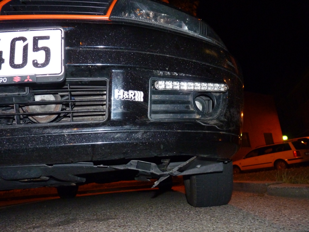 Ergebniss: Ein Riss in der Stossstange (links), gebrochene Nebler-Halterung, gerissenes "Schutzblech", Neblerblende könnte auch hin sein da sie mit einer schraube befestigt ist und diese nach dem Unfall nur noch am Kabel des TFL hing.