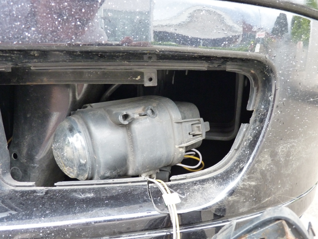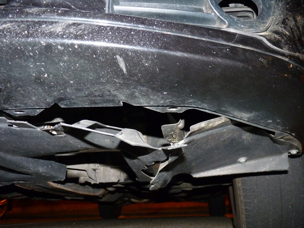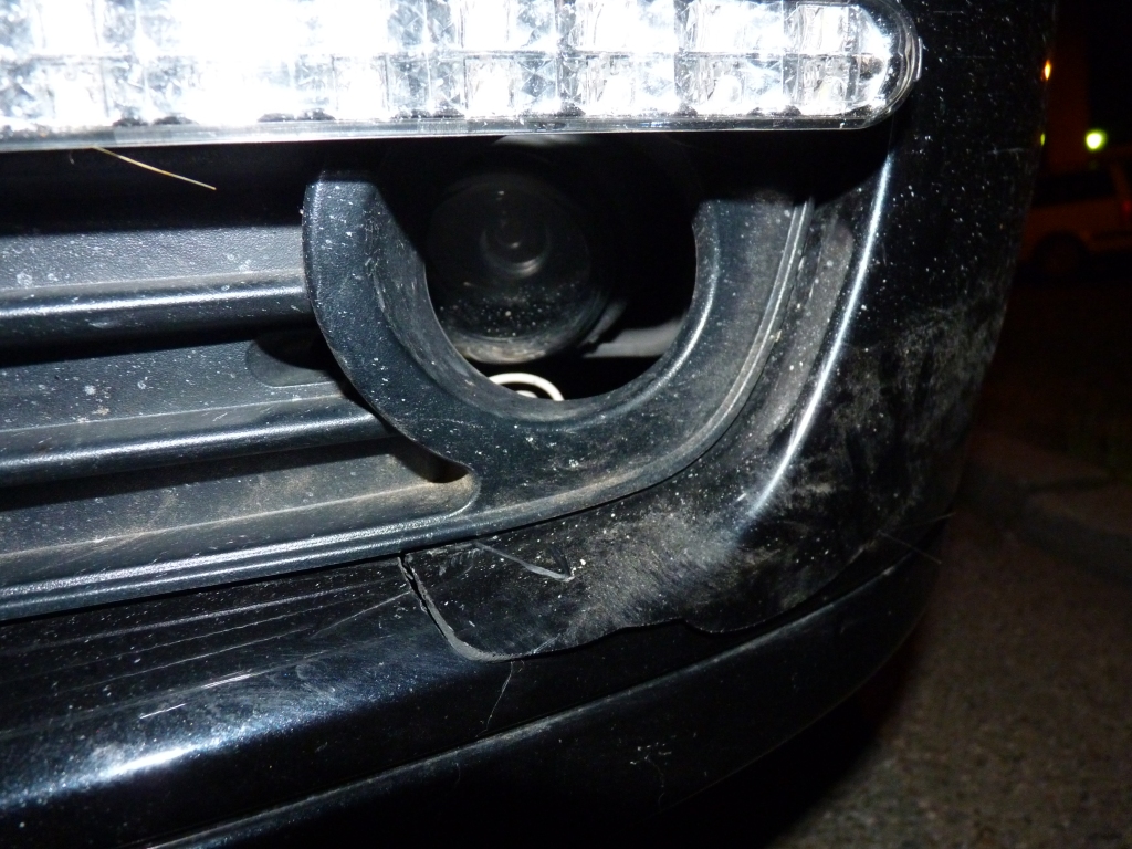 Ergebniss: Ein Riss in der Stossstange (links), gebrochene Nebler-Halterung, gerissenes "Schutzblech", Neblerblende könnte auch hin sein da sie mit einer schraube befestigt ist und diese nach dem Unfall nur noch am Kabel des TFL hing.