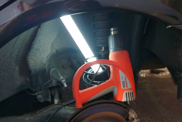 Gummihammer, Heissluftpistole und drauf gekloppt.