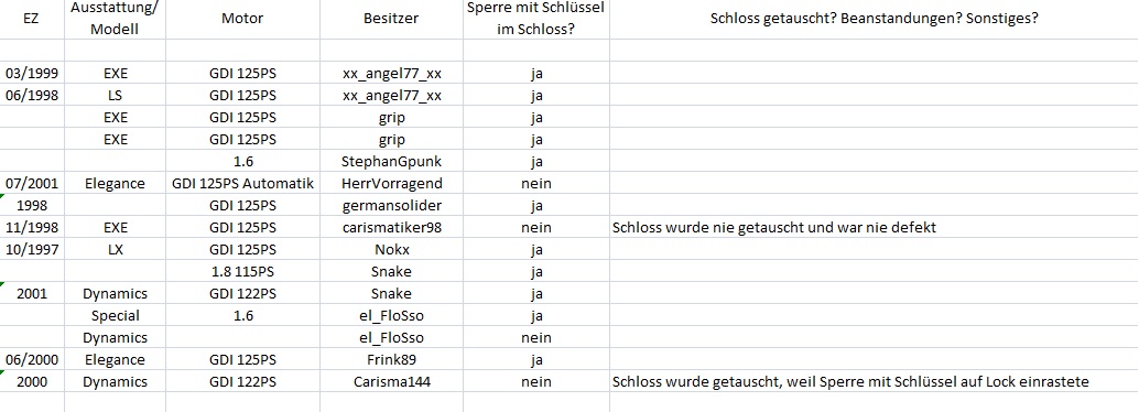 Wäre cool, wenn ihr die fehlenden Infos für euch jeweils mal nachtragen könnt. Kann ganz formlos sein. Ich werde beim Elbetreffen noch weitere Fahrzeuge aufnehmen. Mal sehen, ob wir Licht ins Dunkel bringen können. Denn es gibt definitiv Fahrzeuge, da ist das Schloss "anders". Die Frage ist, wieso?