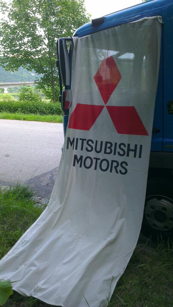 Eine grosse Mitsu Flagge habe ich heute von meinem Händler erhalten. Schaut nicht mehr so blendend aus aber erfüllt ihr Zweck.
