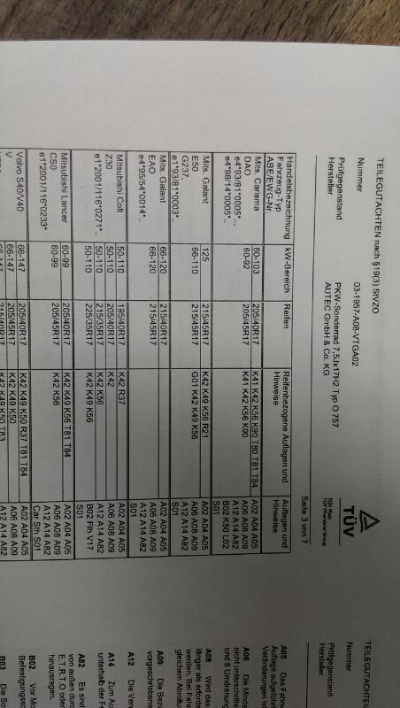 wir wissen aber noch gar nicht was für Felgen es sind und was für Auflagen für den Cari drinn stehen.