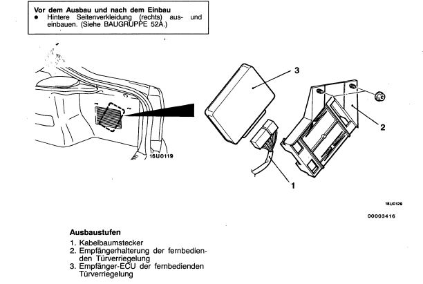 Schaut ungefähr so aus . Da ist auch noch ein möglicher Einbauort zu sehen. Das Kästchen ist grau, steht in der Regel "Keyless Entry Receiver" drauf.