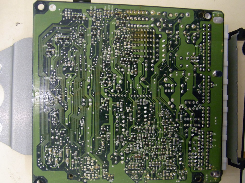 Nun weiß ich nicht mehr so genau nach was ich suche, bzw was in der ECU zu reparieren ist. Dunkel ist nur eine Stelle auf der Unterseite der Leiterplatte im Bereich von vermutlich Gleichrichterbrücken oder Widerstandsnetzwerken. (Auf dem Bild ECU_2 oben in der Mitte)