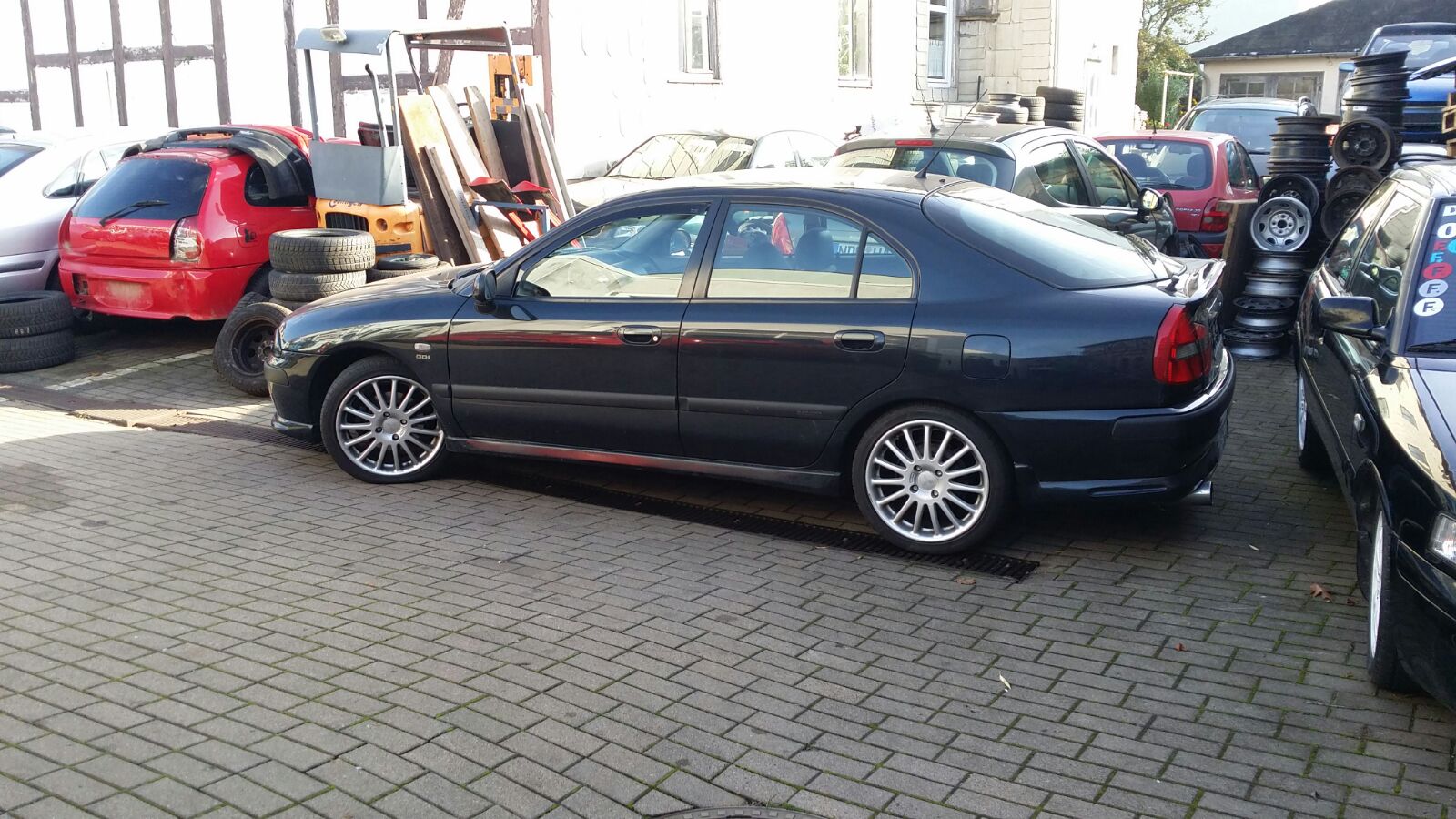 Ich hatte mir eine Heckklappe, komplette Bremse HA (war sogut wie neu) sowie zwei gute Winterreifen und einiges an kleinteile abgebaut. Auch ein Heckspoiler habe ich bereits günstig erwerben können, hab ihn mal grob draufgestellt.