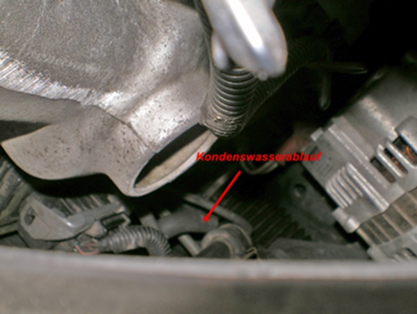 Hi und thks..wo ist der Kondensatablauf am Spritzblech vorne?