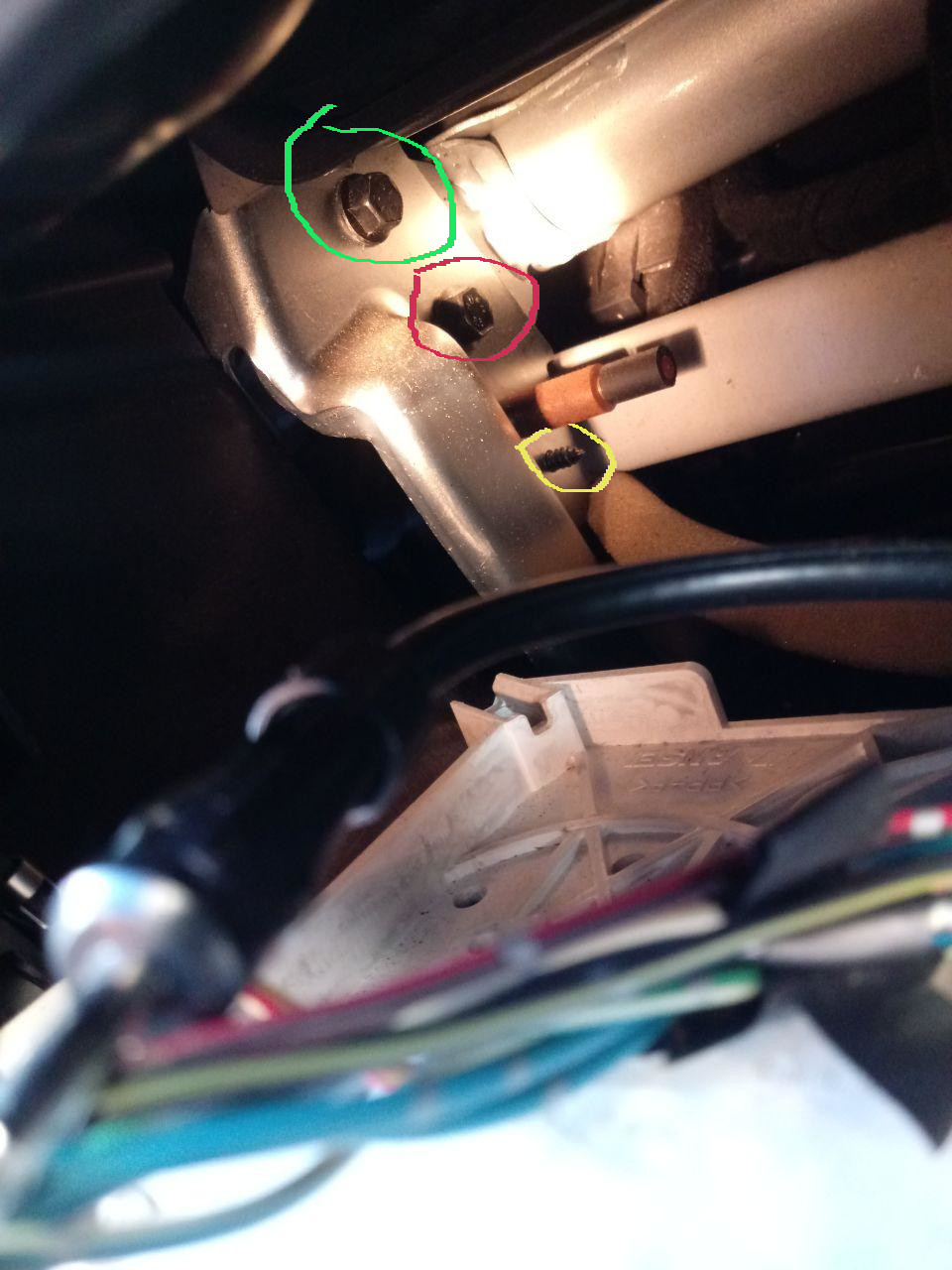 @Dorfi Ich habe auch so ein schwarzes Kabel mit einem kleinen Ring und versuche rauszufinden wo ich das anschliessen kann. Ich habe gelesen, dass du geschrieben hast: "wenn du in dein radioschacht guckst haste links 2 gewindebolzen stehen da das kabel einfach rann schrauben". Meinst du eins dieser hier (siehe die Kreise auf meinem Bild)?