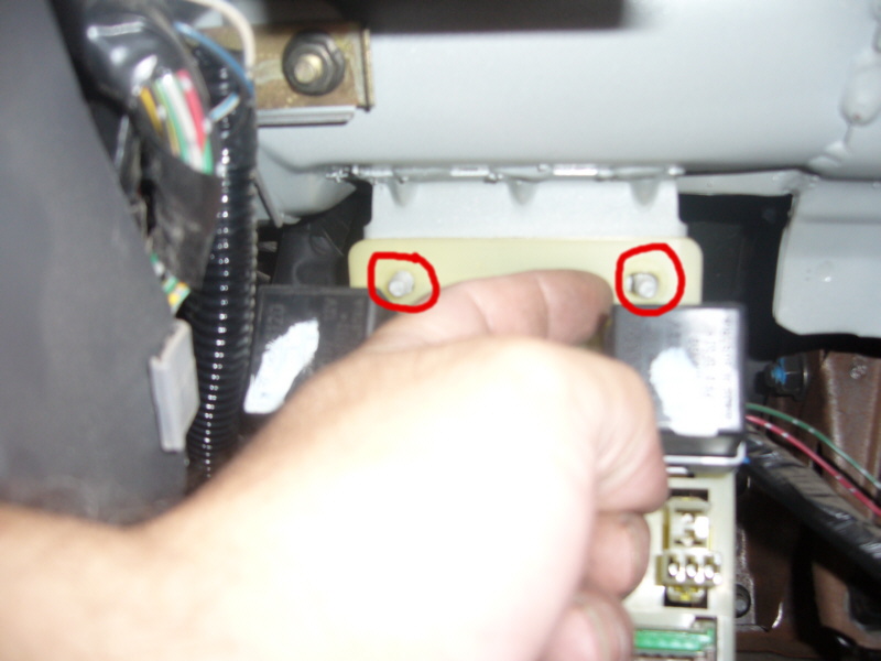 Blinkerelais abziehen.......damit beim Anschliessen nichts passiert, und die beiden 10.er Muttern abschrauben. Die Platine dann vorheben und .....umdrehen.