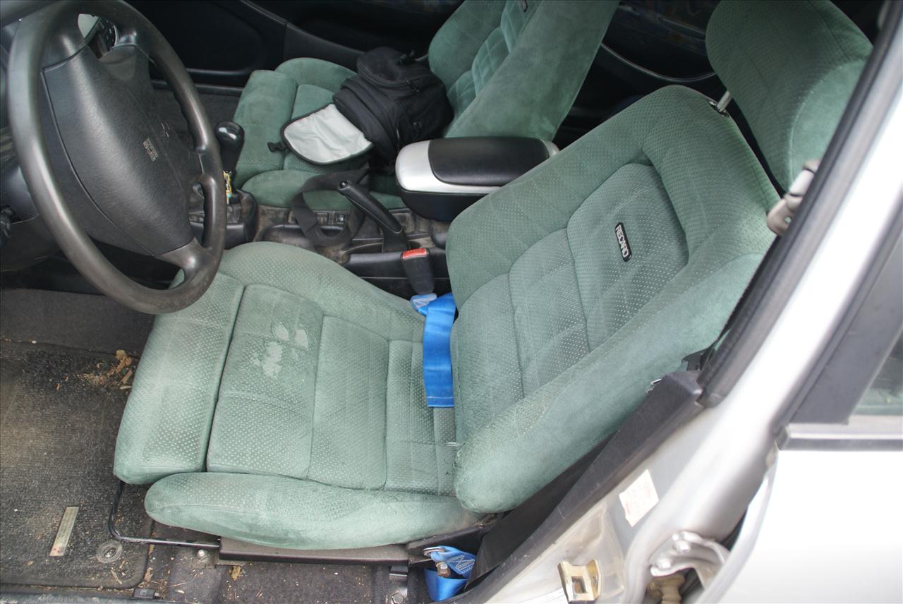 Recaro auf rechter Seite in sehr gutem Zustand. Allerdings im Hängestoff zwichen der normalen Sitzfläche und dem ausziehbarem Teil ein Brandloch von einer Zigarette. Stammt vom Vorbesitzer der Sitze.