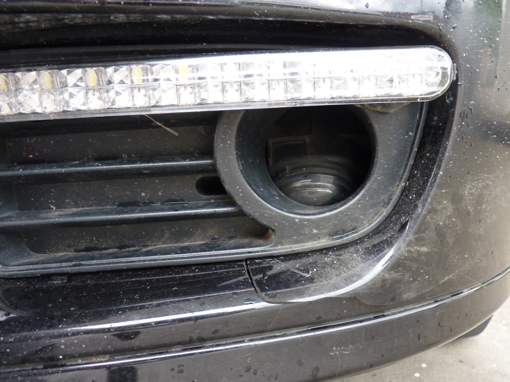 Ergebniss: Ein Riss in der Stossstange (links), gebrochene Nebler-Halterung, gerissenes "Schutzblech", Neblerblende könnte auch hin sein da sie mit einer schraube befestigt ist und diese nach dem Unfall nur noch am Kabel des TFL hing.